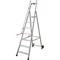Escabeau Mayorà avec rampe de sécurité et roues, Hauteur d'accès: 3.39 m, Plate-forme hauteur: 159 cm Escabeau Mayorà avec rampe de sécurité et roues, Hauteur d'accès: 3.39 m, Plate-forme hauteur: 159 cm