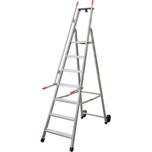 Escabeau Mayorà avec rampe de sécurité et roues - 5 à 9 marches - Facal