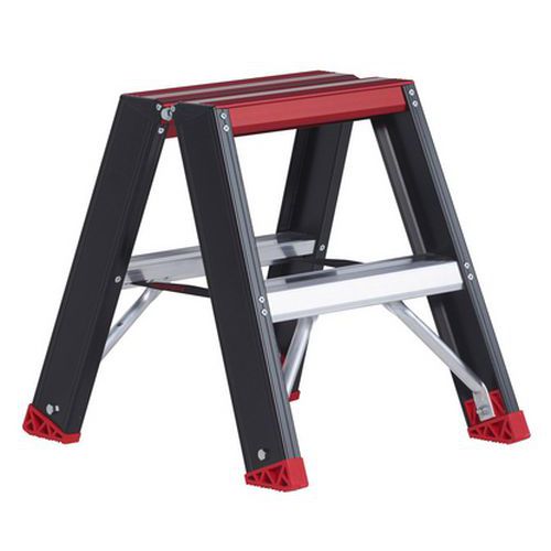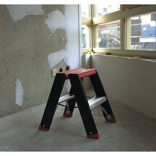 - Escabeau à double plan avec revêtement antidérapant.