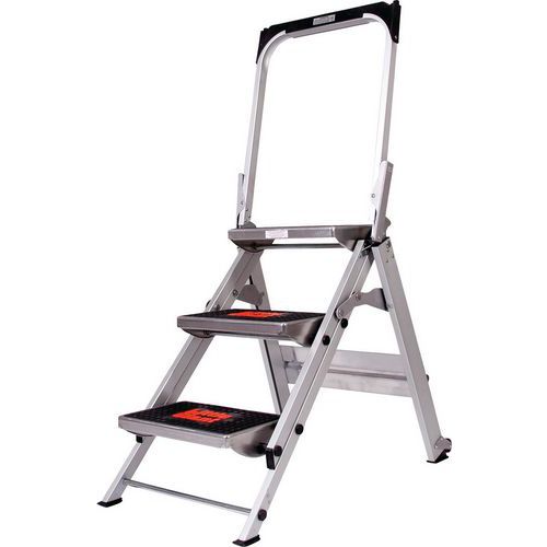 - Les escabeaux à trois et quatre marches sont dotés d'un plateau à outils intégré.
