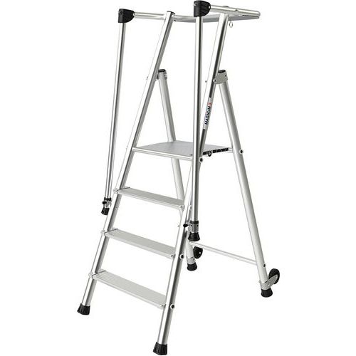 - Escabeau avec double rampe intégrée et repliable.
