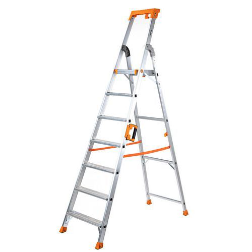 Tablette porte-outils multifonctions. Profils renforcés en aluminium. Marches antidérapantes. Facile à transporter et à stocker. Garantie client : 10 ans Charge maxi (kg) : 150 kg