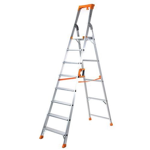 Tablette porte-outils multifonctions. Profils renforcés en aluminium. Marches antidérapantes. Facile à transporter et à stocker. Garantie client : 10 ans Charge maxi (kg) : 150 kg