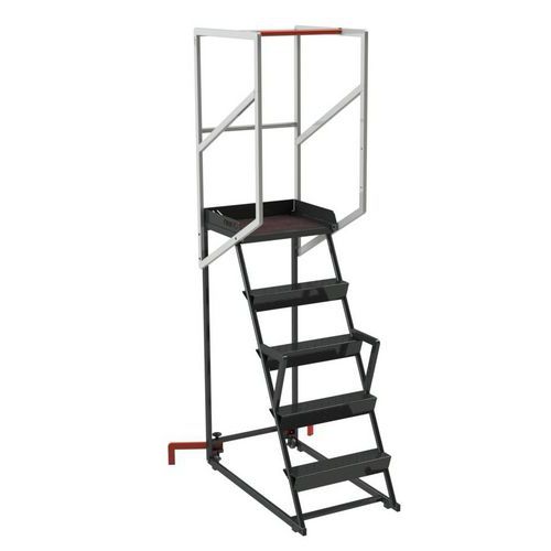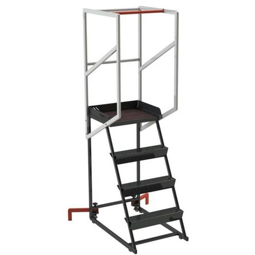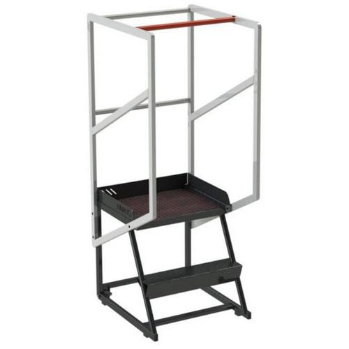 Escabeau roulant étroit avec marches autoporteuses antidérapantes. Fiabilité et haute sécurité : structure entièrement mécano-soudée. Garde-corps de sécurité, butée antiglisse et barre antichute. Plateforme en tôle aluminium larmée antidérapante. Escabeau roulant léger, compact et maniable Roulettes avant non tachantes. Hauteur garde-corps 1 m. Fabriqué en France Finition : Époxy Charge maxi (kg) : 150