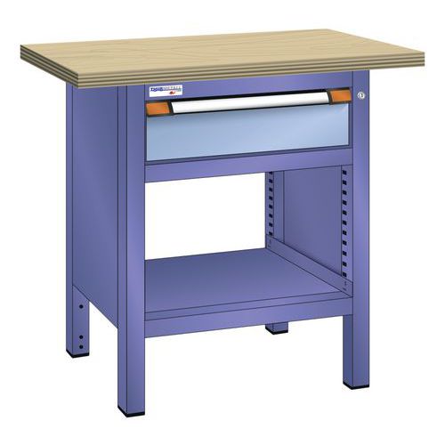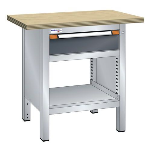 Établi compact hêtre 100x70x85 cm 1 tiroir 1 étagère Thurmetall