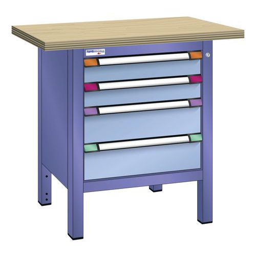 Établi compact hêtre 100x70x85 cm 4 tiroirs Thurmetall