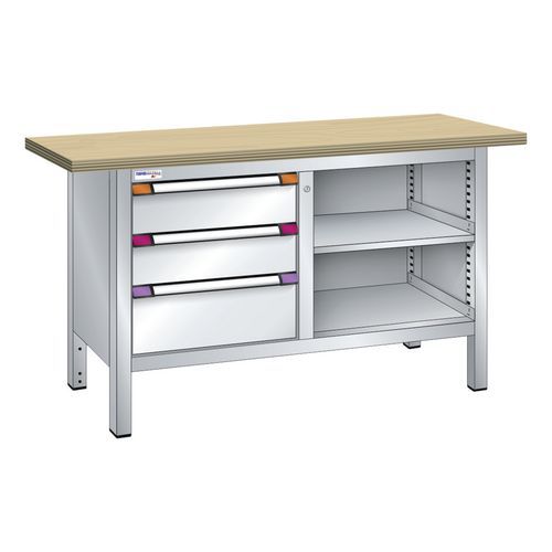 Établi compact hêtre 150x70x85 cm 2 étagères 3 tiroirs Thurmetall