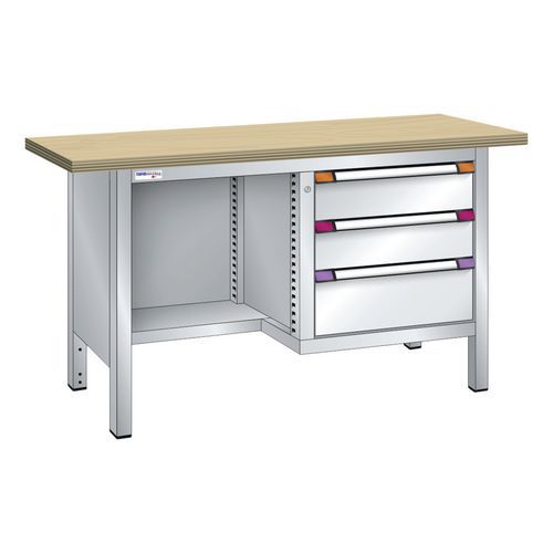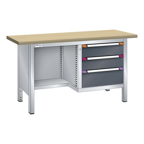 Établi compact multiplex 150x70x84 cm 1 étagère 3 tiroirs Thurmetall