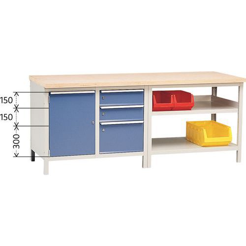 | Intitulé du produit | Établi complet Modul 200 avec armoire et tiroirs, Charge maxi: 300 kg, Hauteur hors tout: 810 mm |