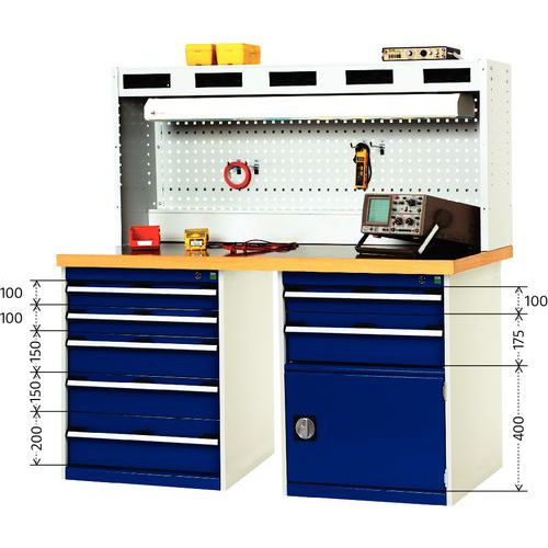 | Intitulé du produit | Établi Cubio Combi avec 2 armoires à tiroirs, Hauteur hors tout: 840 mm, Largeur hors tout: 2000 mm |