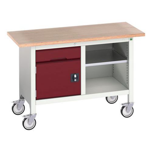Etabli Monobloc Roulant Verso1250x600 M1 en gris clair/rouge - Bott