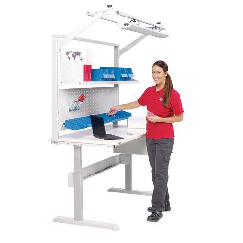 Poste de montage réglable avec tablette et bras - 500 kg - Manutan Expert Réf. : MIG91302502