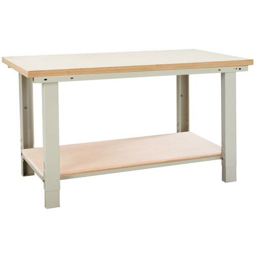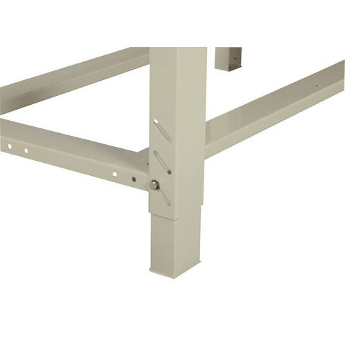 Robuste établi en tôle d’acier soudée. Assemblage simple par vis et écrous.