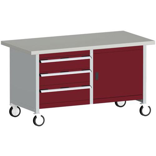 Etabli roulant monobloc Cubio - plateau linoléum 1 porte et tiroir - Bott