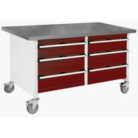 Etabli roulant monobloc Cubio, Hauteur hors tout: 840 mm, Nb de tiroirs: 6, Largeur hors tout: 1500 mm