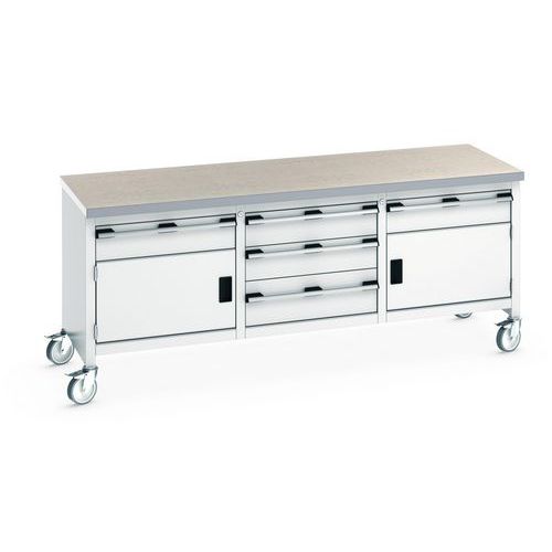 Etabli roulant monobloc Cubio - plateau linoléum 2 portes et tiroirs - Bott