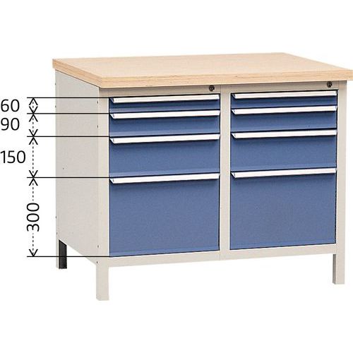 | Intitulé du produit | Établi sans plateau Modul 100 avec tiroirs, Charge maxi: 500 kg, Hauteur hors tout: 810 mm |