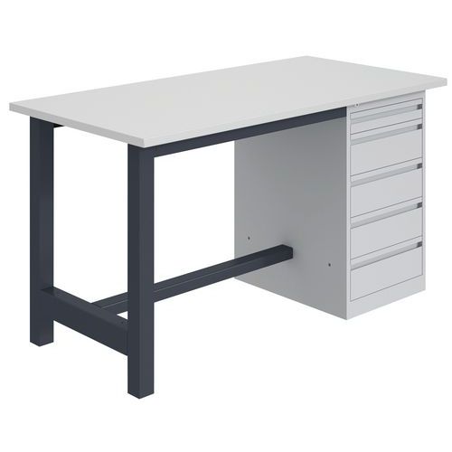 Etablis CKS plateau mélaminé caisson 5 tiroirs Sofame, Charge maxi: 500 kg, Hauteur hors tout: 820 mm Etablis CKS plateau mélaminé caisson 5 tiroirs Sofame, Charge maxi: 500 kg, Hauteur hors tout: 820 mm