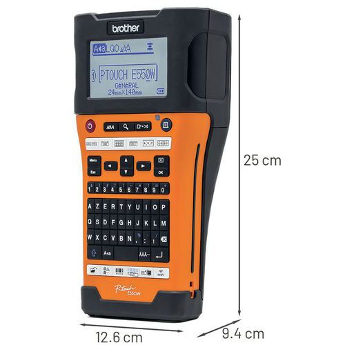 | Intitulé du produit | Étiqueteuse Brother PT-E550WVP AZERTY, Alimentation: Pile, Longueurs: 25 cm, Largeur: 12.6 cm |