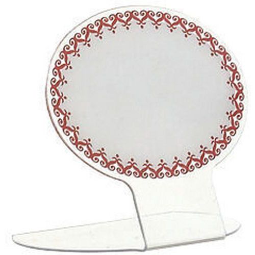 | Intitulé du produit | Étiquette chevalet ovale à dentelle, Coloris: Transparent, Hauteur: 7 cm, Largeur: 68 mm, Matériau: PVC |