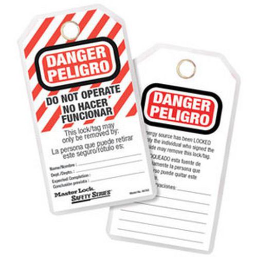 Étiquette de consignation, Modèle: Espagnol/Anglais, Anse Ø: 11 mm, Ouverture largeur: 79 mm