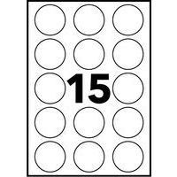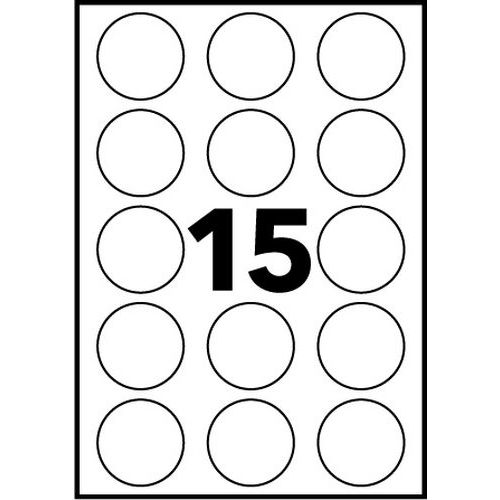 Étiquette enlevable ronde blanche, Nb d'étiquettes/planche: 15, Nb d'étiquettes: 375, Diamètre Ø: 51 mm