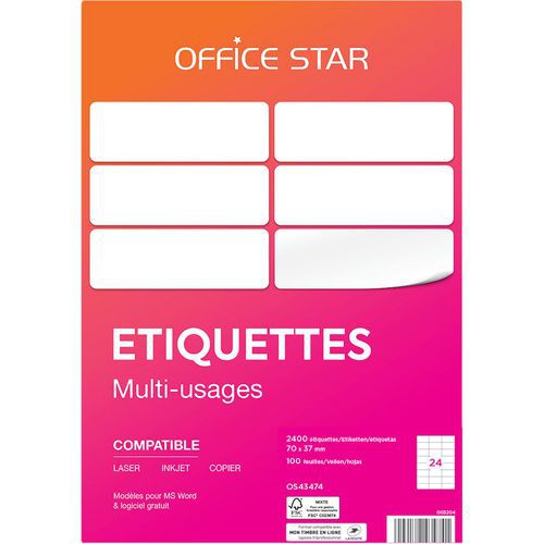 Étiquette multi-usages, Nb d'étiquettes/planche: 24, Nb d'étiquettes: 2400, Étiquette longueur: 70 mm Étiquette multi-usages, Nb d'étiquettes/planche: 24, Nb d'étiquettes: 2400, Étiquette longueur: 70 mm