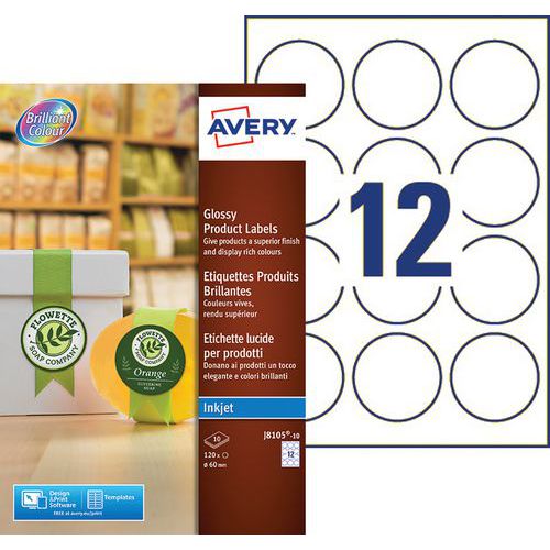 | Intitulé du produit | Étiquette produit, Nb d'étiquettes/planche: 12, Nb d'étiquettes: 120, Ø: 60 mm, Réf. Fabricant: J8105 |