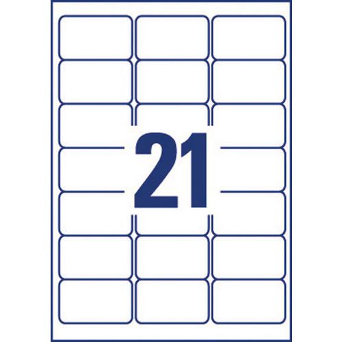 Étiquette recyclée blanchie sans chlore, facile à décoller de leur support. Compatible toutes marques d'imprimantes laser. Coins ronds.