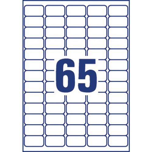 Étiquette transparente Avery, Nb d'étiquettes/planche: 65, Nb d'étiquettes: 1625, Étiquette longueur: 38.1 mm