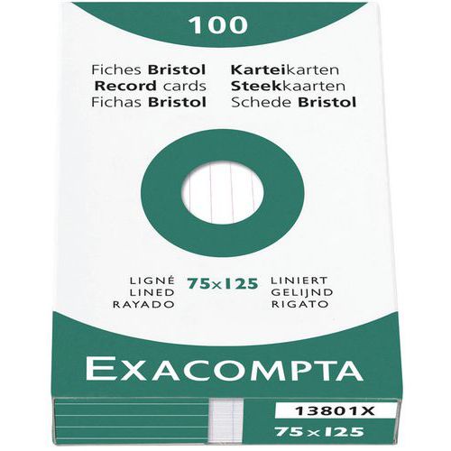 - Étui de 100 fiches bristol lignée facile à identifier grâce à la couleur du packaging.