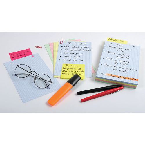 | Intitulé du produit | Étui de 100 fiches quadrillées perforées x12 assortis, Grammage: 205 g/m², Réglure: Petits carreaux (5 x 5) |