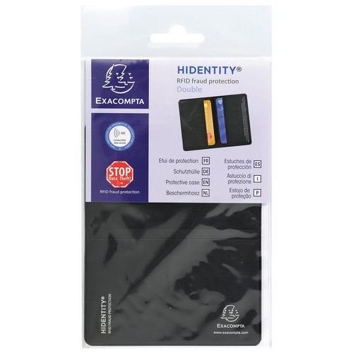 | Intitulé du produit | Etui protection RFID Hidentity Double, Coloris: Noir, Matériau: PVC, Modèle: Hidentity |