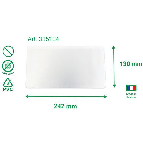 | Intitulé du produit | Etuis porte-masque antimicrobiens format chéquier lot de 6, Épaisseur: 110 µm, Hauteur: 148 mm |