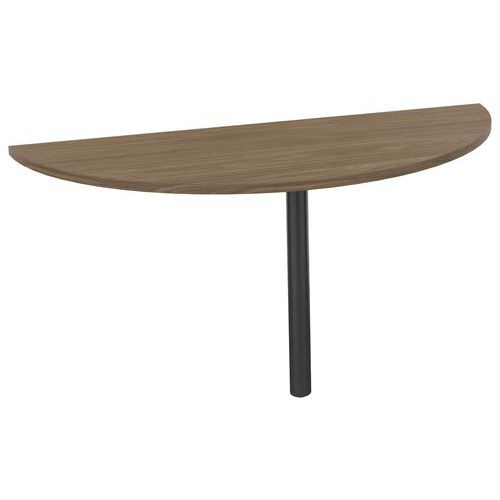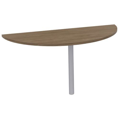 Extension pour bureau demi lune Quatuor Plateau hauteur 72 cm en panneau de particules épaisseur 25 mm Revêtement mélaminé décor bois et chants plaqués. Pied de renfort métal Ø avec vérin de réglage. Pièces de liaison fournies.