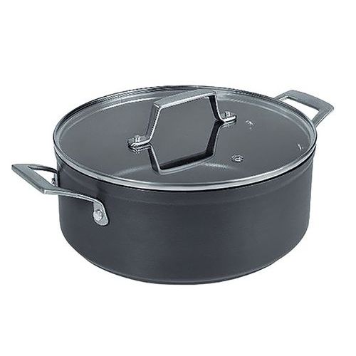 Faitout - Anodized - Une gamme fonctionnelle, élégante et innovante - En aluminium anodisé avec revêtement antiadhésif QuanTanium d'une grande durabilité et ultra - résistant : surface robuste et hautement résistante aux éraflures, à la déformation et à la corrosion - Le traitement électrolytique utilisé dans le processus de fabrication scelle l'aluminium et le durcit afin qu'il ne pénètre pas dans les aliments - Diffuse la chaleur uniformément en évitant la surchauffe et en obtenant d'excellents résultats de cuisson - Anses rivetées en acier inoxydable sûres et ergonomiques - Rivets en aluminium qui empêchent le transfert de chaleur - Couvercle en verre trempé cerclé d'acier inoxydable - Tous feux dont induction - Capacité 2.6 L - Hauteur 9 cm - Garantie 2 ans.
