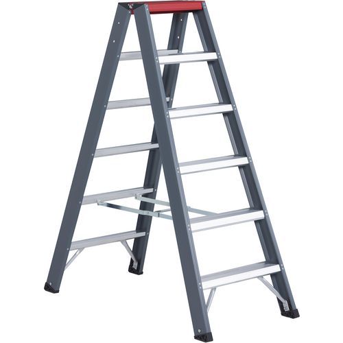 Falco escabeau double FDO, Plate-forme hauteur: 1.4 m, Hauteur d'accès: 3.4 m, Coloris: Gris