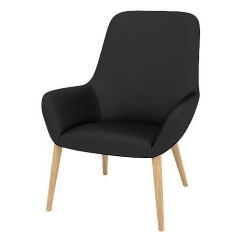 Fauteuil City dossier moyen enduit PVC M1 pied bois
