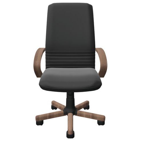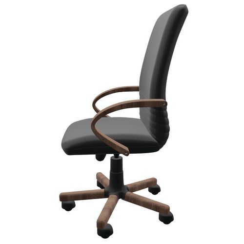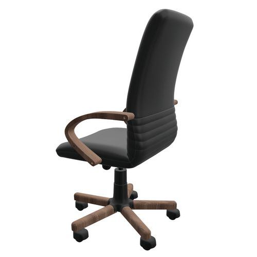 Fauteuil direction Mirage Wood cuir noir et accoudoirs bois