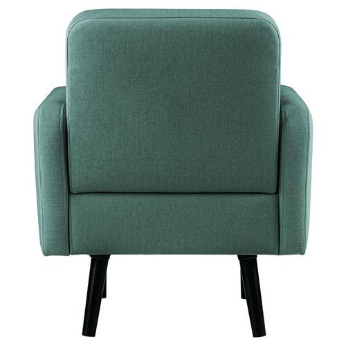 Fauteuil Lisoa en tissu polyester et piétement hêtre massif laqué noir qui allient confort et élégance. Structure panneaux de particules, épaisseur 15 mm et suspension avec sangles élastiques entrecroisées agrafées Assise : mousse polyuréthane 30 kg/m3, épaisseur 80 mm, recouverte de ouate polyester 150 g/m2 Dossier : mousse polyuréthane 23 kg/m3, épaisseur 30 mm, recouverte de ouate polyester 150 g/m2 Accoudoirs : mousse polyuréthane 30 kg/m3, épaisseur 30 mm, recouverte de ouate polyester 150 g/m2 Piètement en hêtre massif laqué noir Tissu : 100 % polyester, 370 g/m2