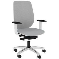 Fauteuil Okay, dossier en résille, MEC14 Mécanisme synchrone autorégulé, dossier en résille R07, support lombaire réglable en hauteur, assise en polypropylène recyclé avec barres en acier. Rembourrage en blocs de mousse en polyuréthane expansée.