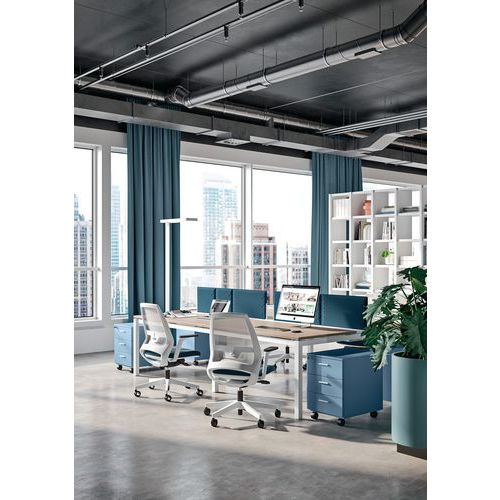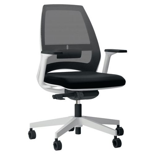 Fauteuil Oxygen dossier résille accoudoirs et piètement blanc