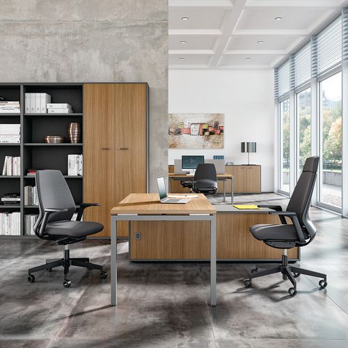 Fauteuil Oxygen pied noir dossier haut contact synchrone tissu M1