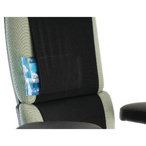 Fauteuil équipé de housses amovibles avec poches kangourou en tissu Atlantic noir permettant de placer des poches chauffantes ou réfrigérantes (non fournies avec le siège) sur les zones les plus sensibles.