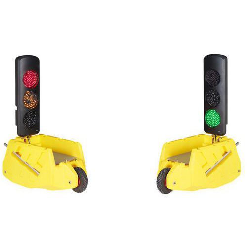 Renforcement de la zone de chantier renforcée grâce à l'interconnexion des feux par radios. Stockage optimisé en transport et en stockage grâce à sa tête de feu rabbatable.