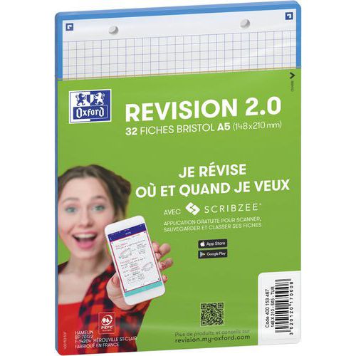 Fiches bristol Revision 2.0 Oxford A5 Q5x5 cadre - Oxford