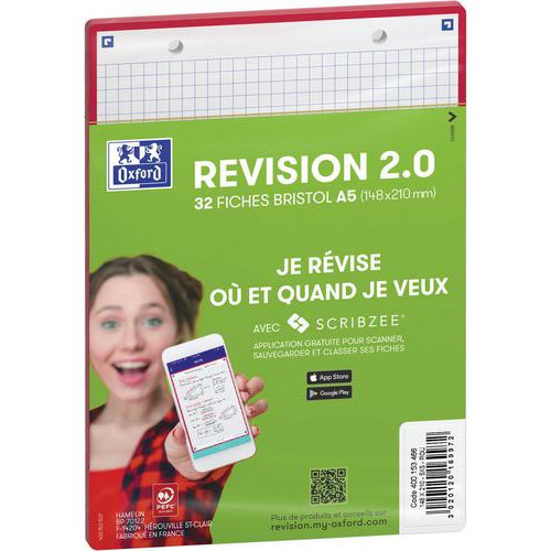 Fiches bristol Revision 2.0 Oxford A5 Q5x5 cadre - Oxford