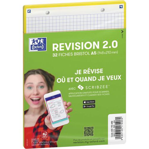 Fiches bristol Revision 2.0 Oxford A5 Q5x5 cadre - Oxford