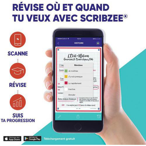 Fiches bristol de révision Oxford A5 quadrillées compatibles avec l'application Scribzee. Avec cadre couleur permettant de classer et repérer vos fiches par thème. Idéal pour organiser vos fiches dans votre smartphone sans perdre de temps. Possèdent des coins arrondis pour qu'elles ne se cornent pas. Scribzee est une application gratuite pour scanner, sauvegarder et classer vos fiches dans votre smartphone.