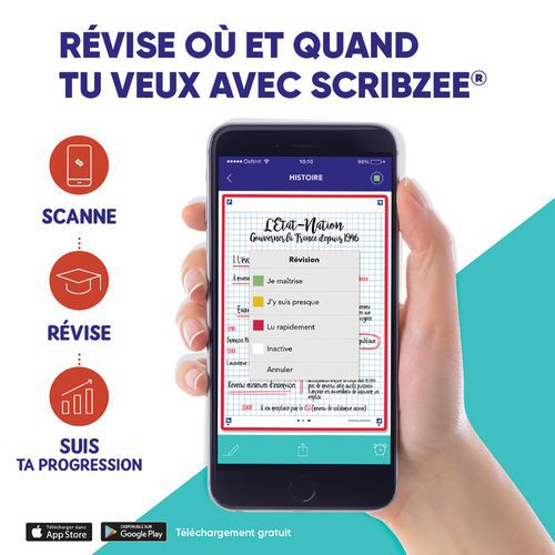 Fiches bristol Revision 2.0 Oxford A6 Q5x5 cadre compatibles avec l'application Scribzee. Scribzee® est une application gratuite pour scanner, sauvegarder et classer vos fiches dans votre smartphone. Une couleur de cadre,par matière pour vous permettre de classer et de mieux repérer vos fiches par thème ou matière. Idéal pour organiser vos fiches dans votre smartphone sans perdre de temps. Coins arrondis pour que les fiches ne se cornent pas.